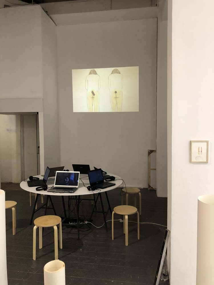 "Link in Bio" features video art, drawings, and sculptures by Even Paz and Perry. It explores digital existence, capturing the fluidity of identities and the breakdown of communication in a screen-dominated world. The exhibition highlights the impact of digital environments on intimacy and communication.
